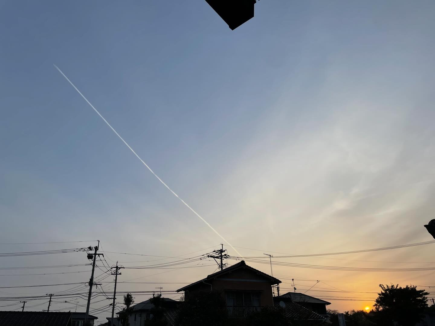 おはようございます☺️今朝の日の出☀️と飛行機雲✈️